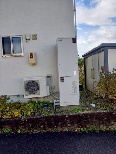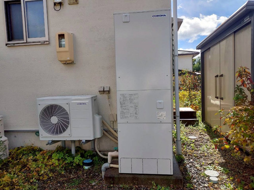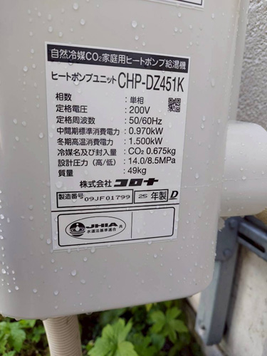 久留米市国分町 コロナ自然冷媒CO2家庭用ヒートポンプ給湯機ヒートポンプユニットCHP-DZ451K エコキュート交換工事