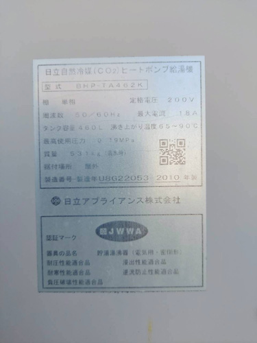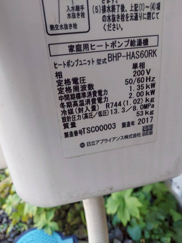久留米市国分町 日立家庭用ヒートポンプ給湯機ヒートポンプユニットBHP-HAS60RK、自然冷媒CO2ヒートポンプ給湯機BHP-TA462K→コロナ自然冷媒CO2家庭用ヒートポンプ給湯機ヒートポンプユニットCHP-DZ451K エコキュート交換工事